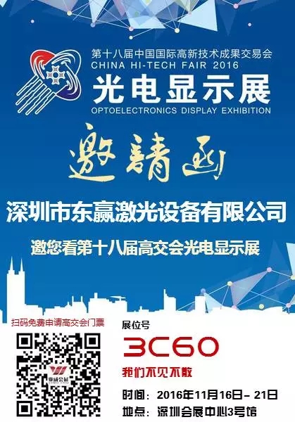 被譽為“中國科技第一展”的“中國國際高新技術成果交易會(高交會)”是中國規模最大的科技類展會,影響力巨大。其中,“光電顯示展”(3號館)是高交會主場之一,憑借其超高專業性與交流國際性的展會形象,成為光電顯示行業重量級專業大展。11月16日至21日,OLED/LCD顯示面板鐳射修復設備明星企業——深圳市東贏激光設備有限公司即將亮相“第十八屆高交會光電顯示展”。