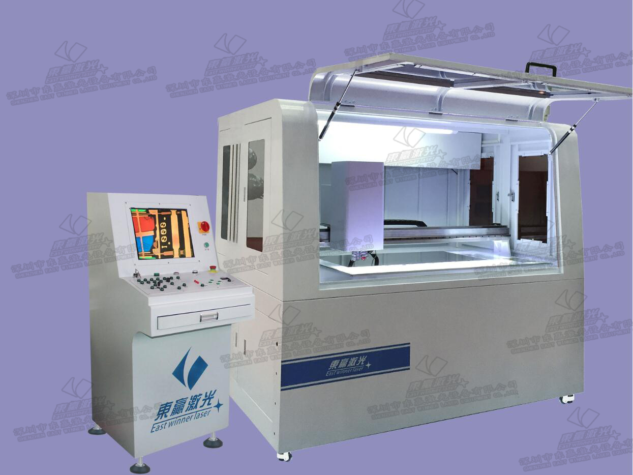 本設備是一款針對3C制造行業中藍寶石切割而研發的超快激光精密切割機,主要用于手機藍寶石HOME鍵、攝像頭保護鏡片等玻璃的切割加工。它配備超快激光器,加工精度高、熱影響區域小、加工邊緣無毛刺和殘渣、長期穩定性好。也可以對多種材料進行精密鉆孔、切割以及劃槽等微加工處理。由于配備了雙振鏡頭和雙工位轉臺以及自動上下料裝置,自動化程度高,加工效率高。由于采用了雙工位結構,激光加工與自動上下料同時進行互不干涉。